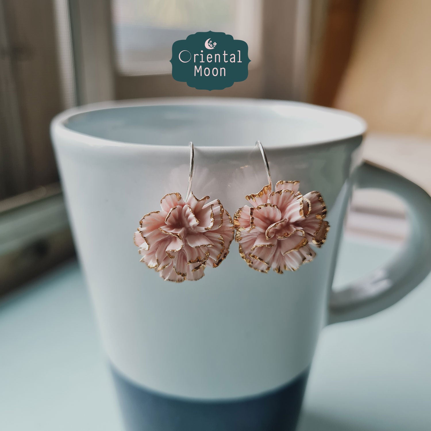 Dok Carnation Porcelain hanging earrings ( 925 sterling silver )