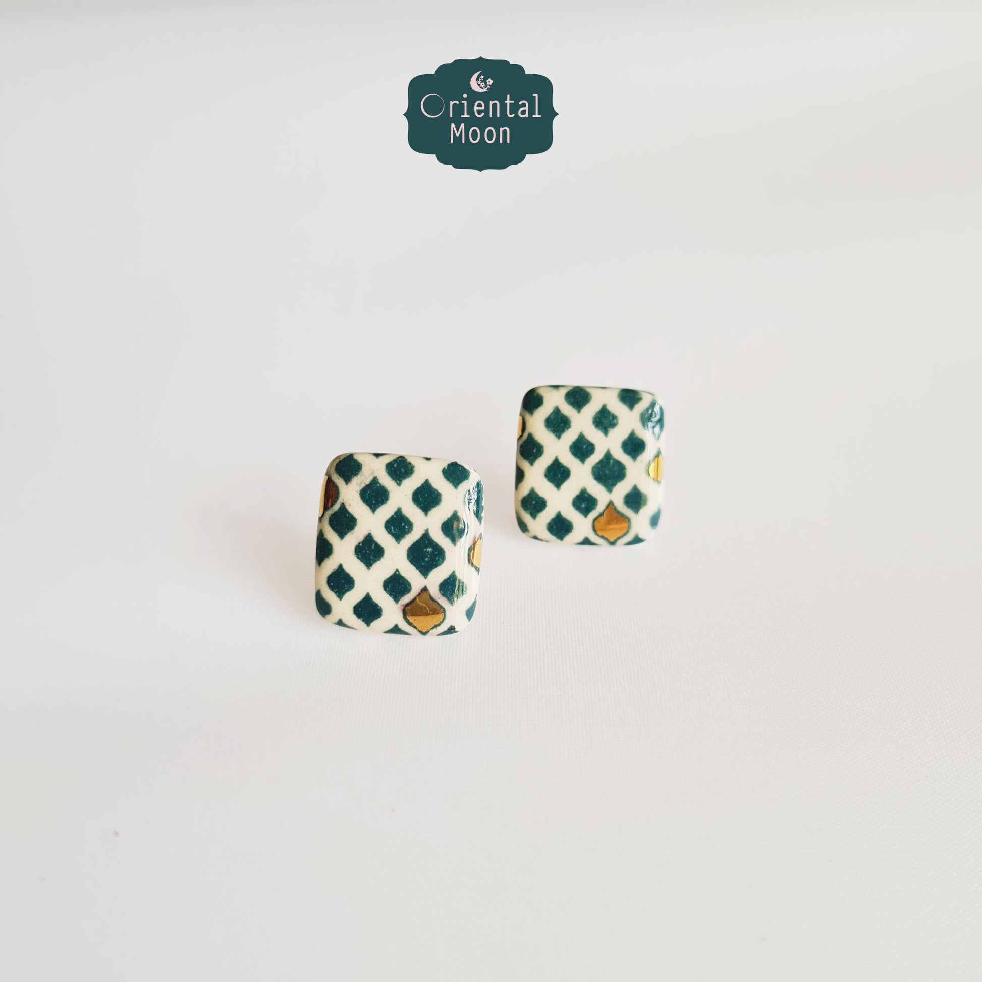 ต่างหูเซรามิคทรงเหลี่ยมมน ลวดลาย