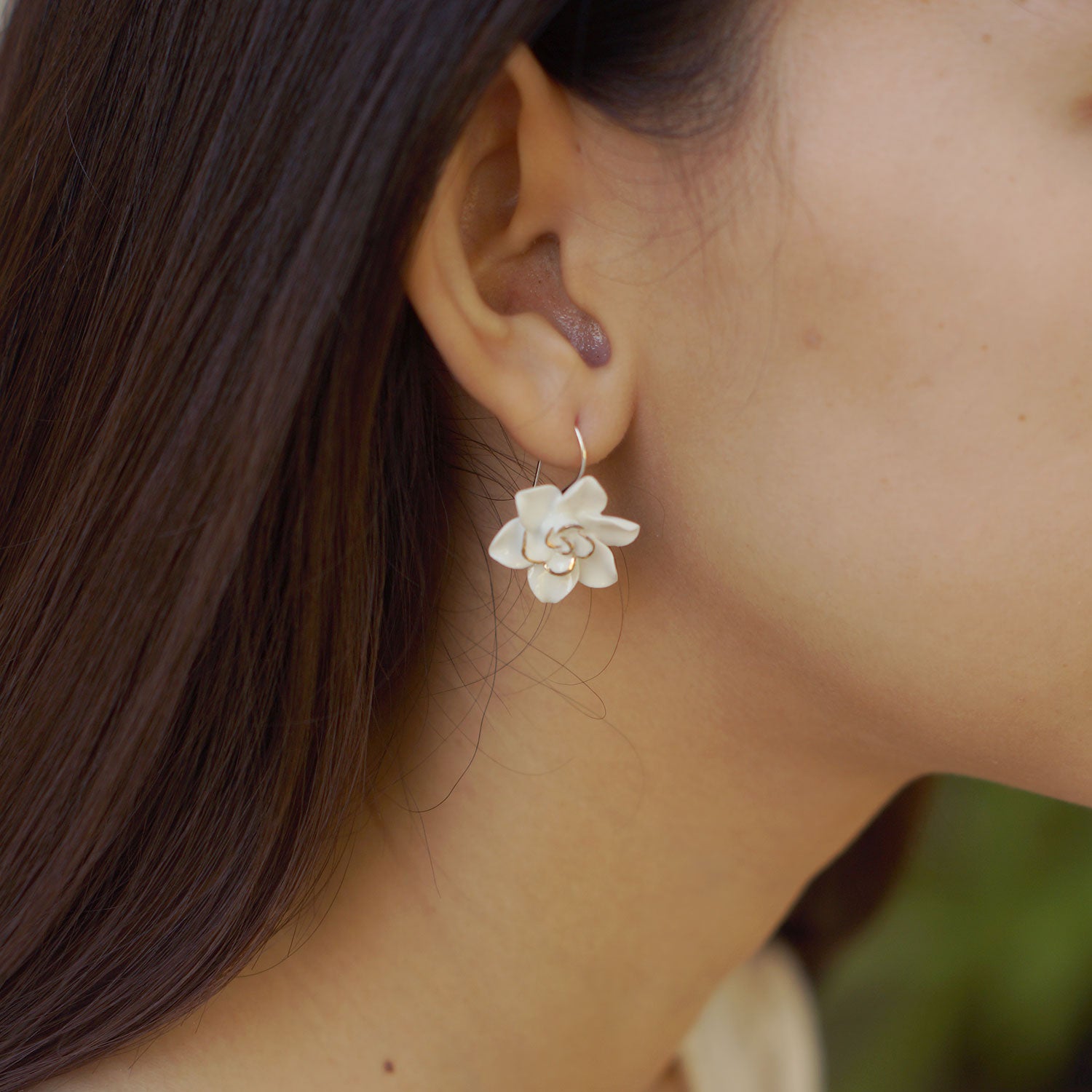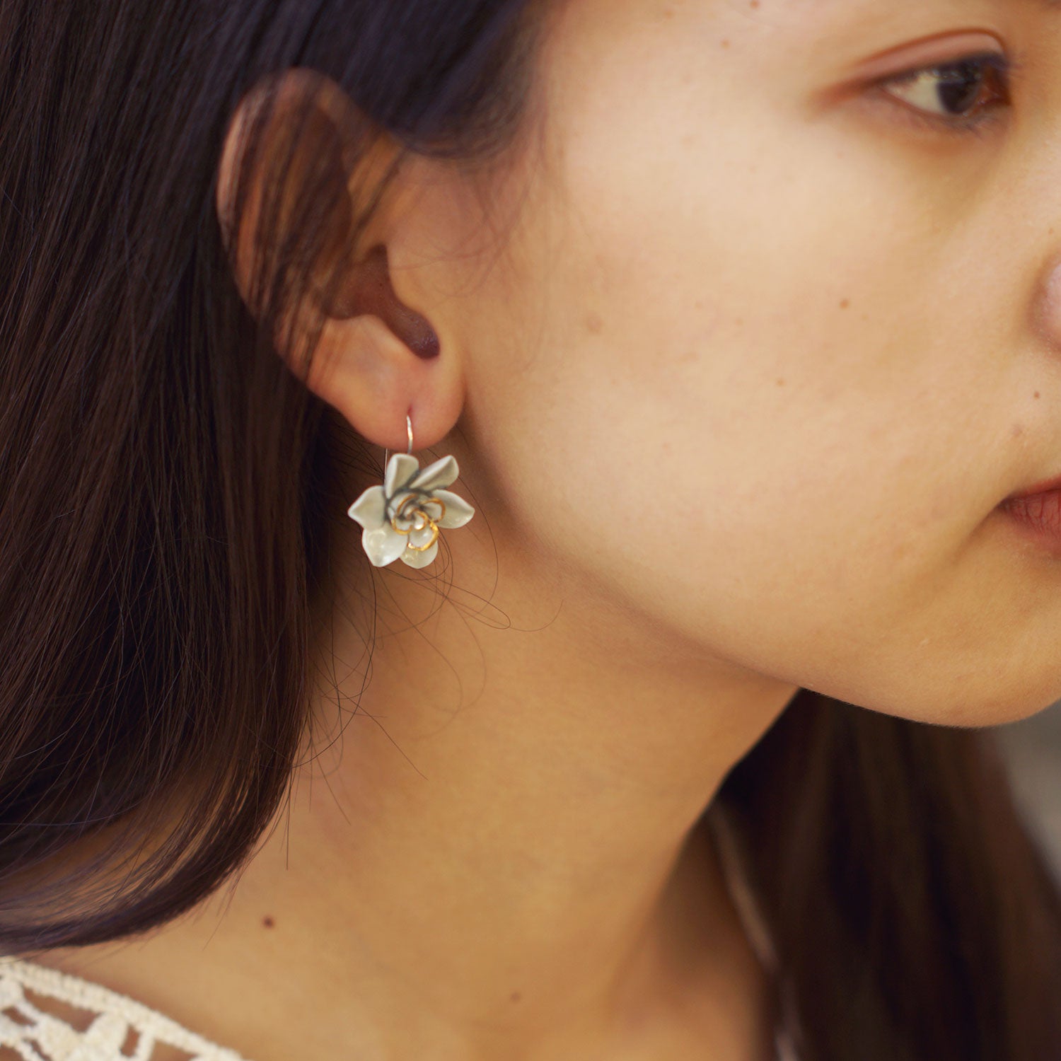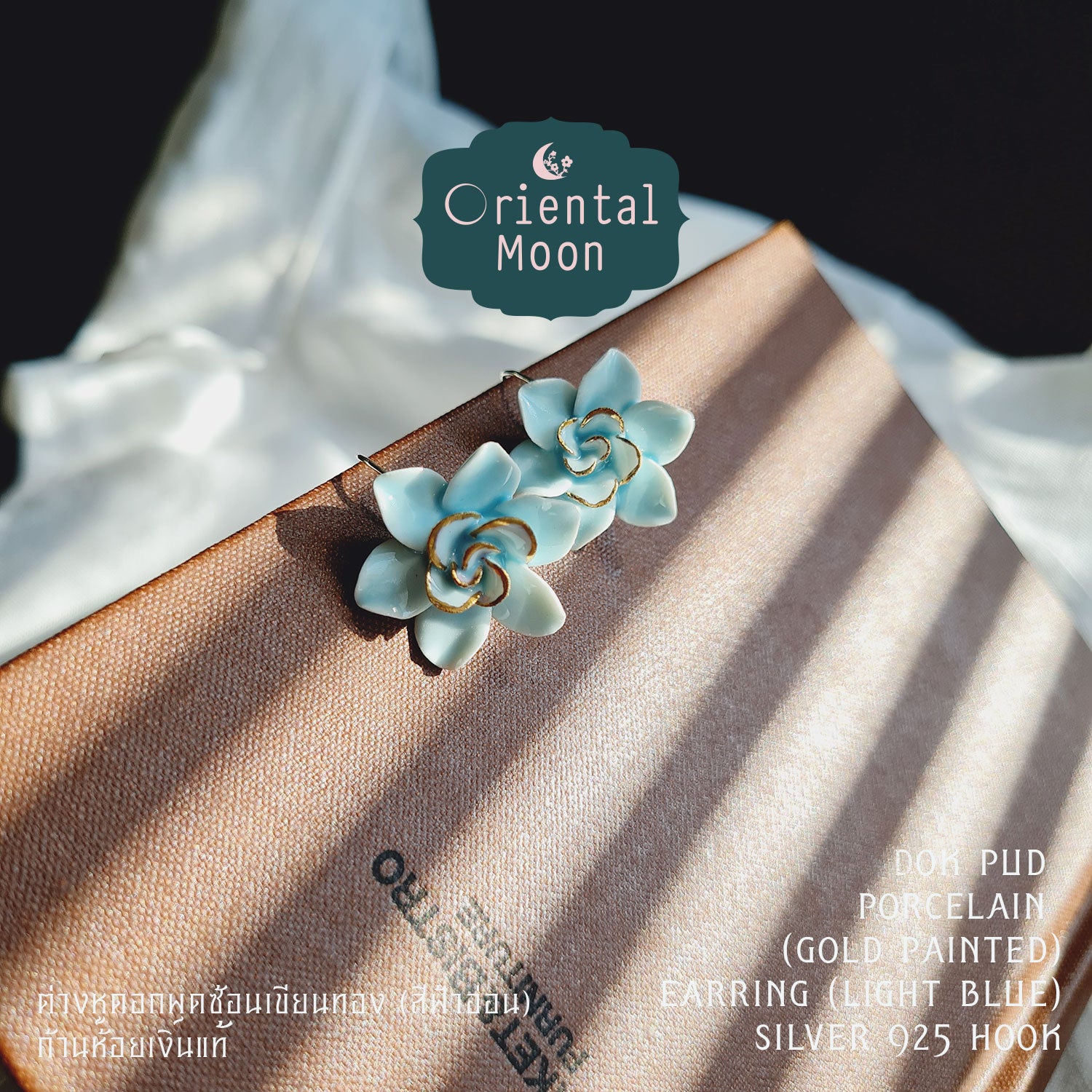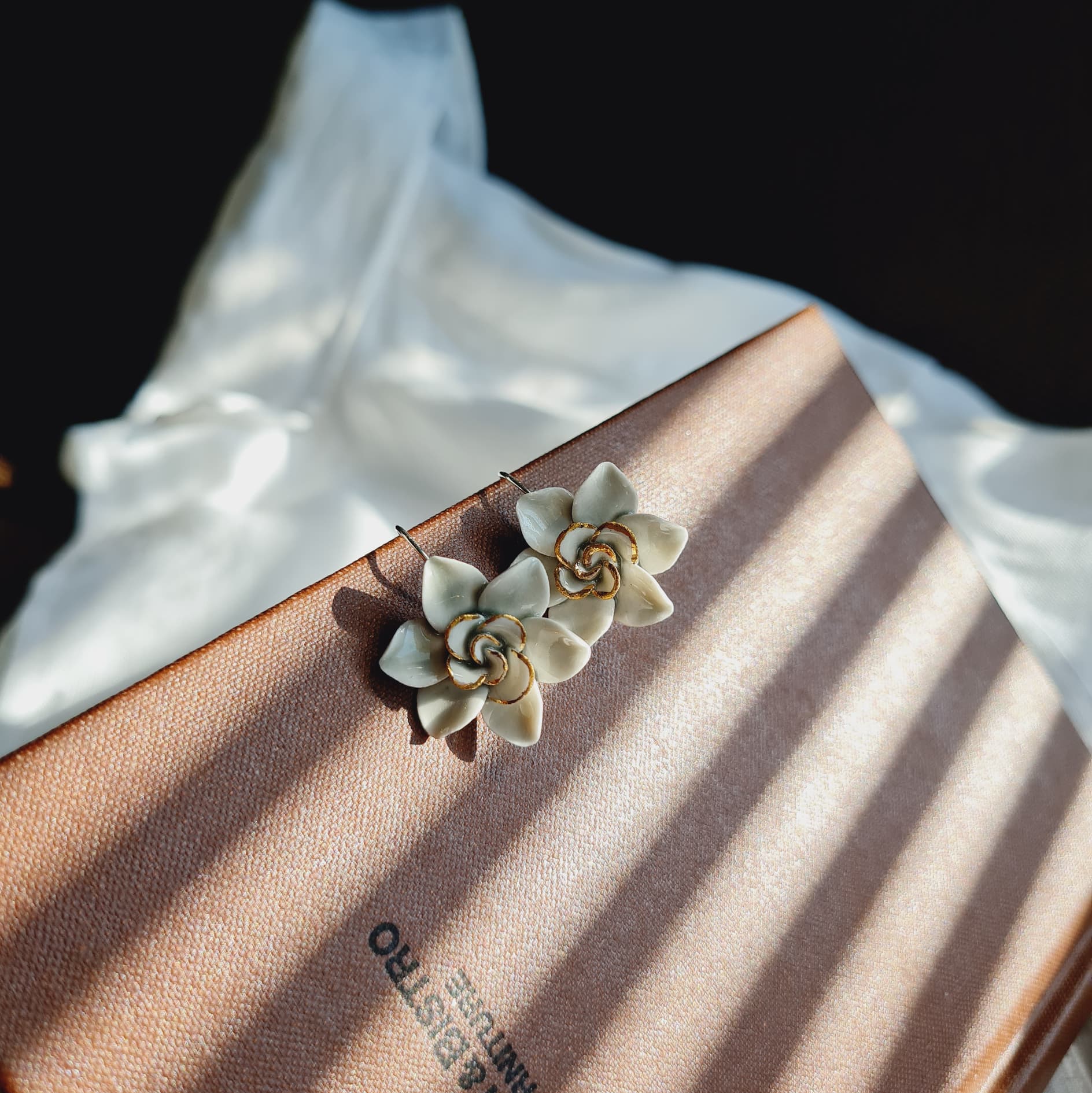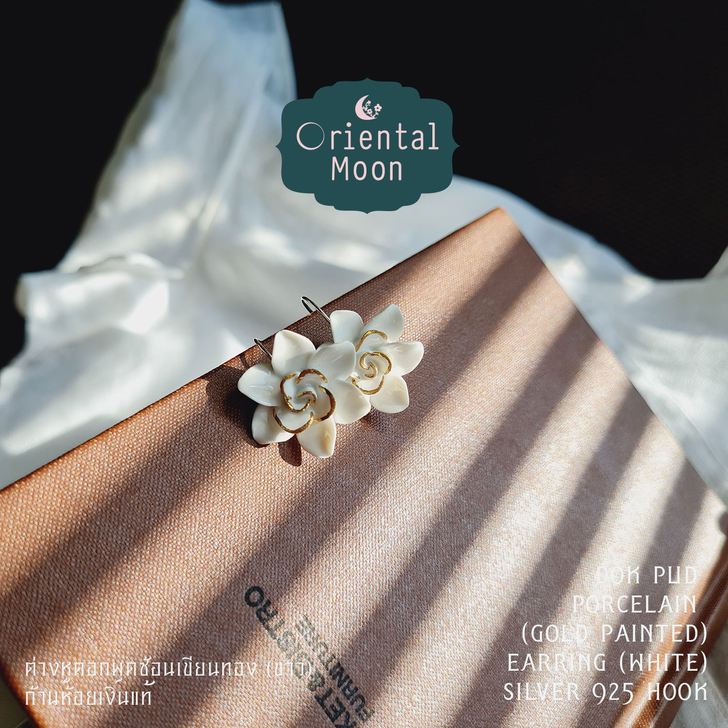 ต่างหูดอกพุดซ้อนพอรซเลนปั้นมือเขียนทอง