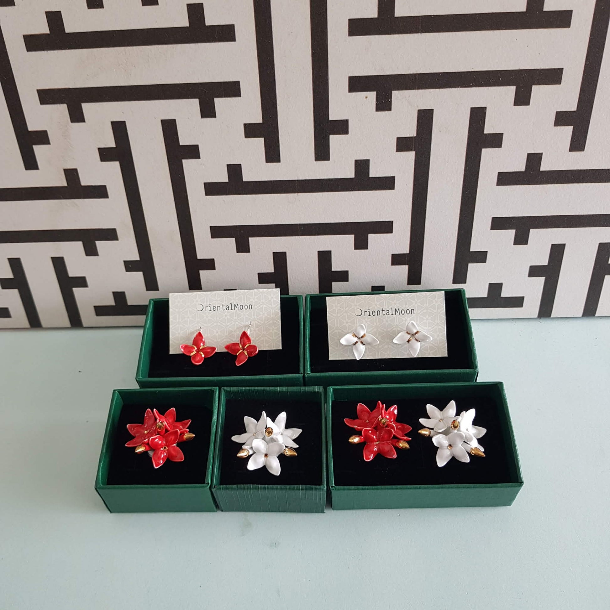 ชุด set เข็มกลัดดอกเข็มสีขแดง + ต่างหูก้านเกี่ยวเงินแท้ 1350