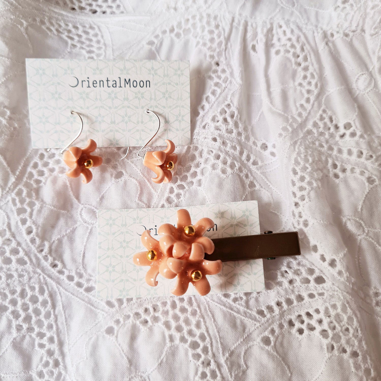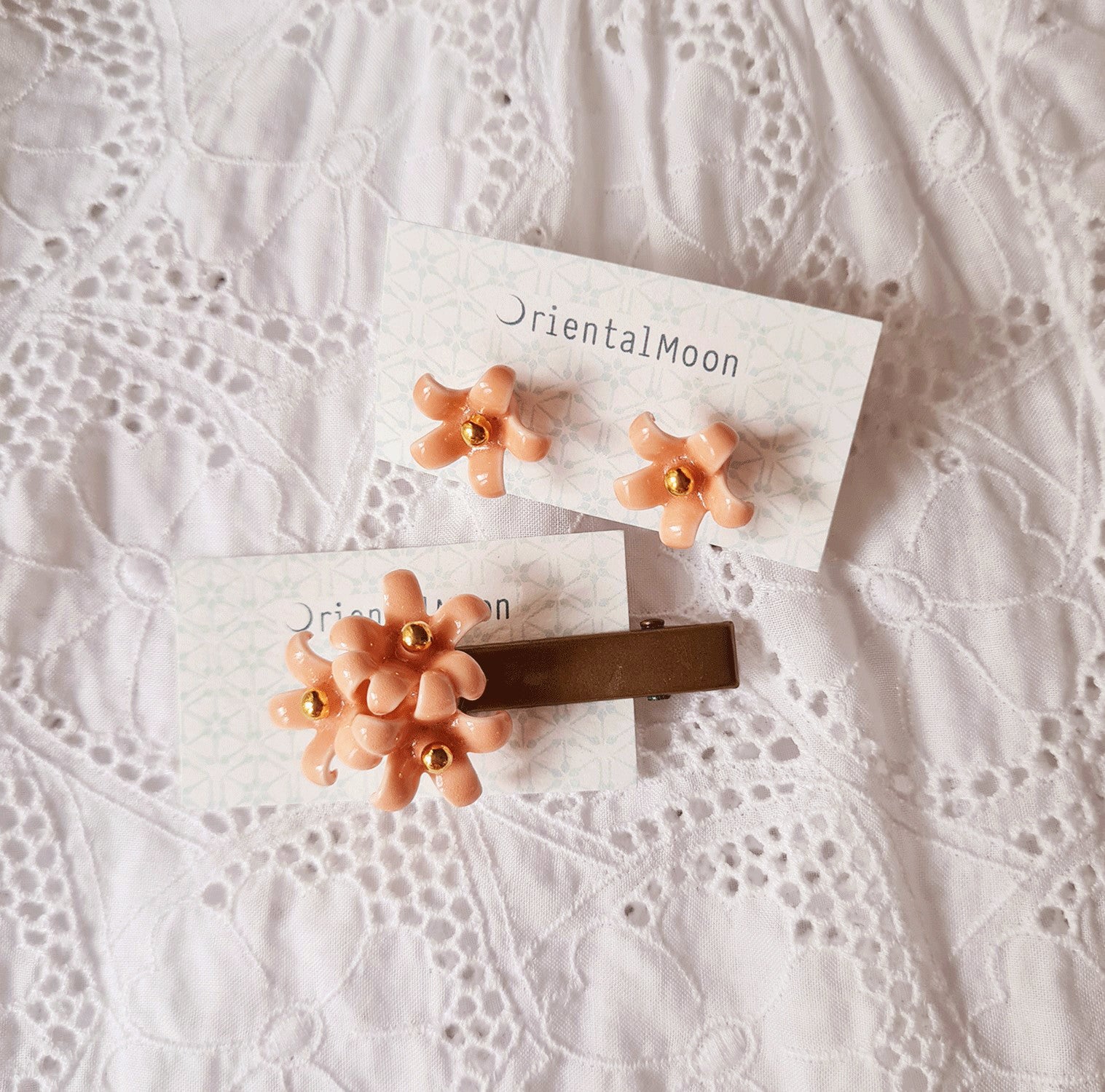 ต่างหูดอกแก้วพอรซเลนปั้นมือ เขียนทองเกสรด้านใน