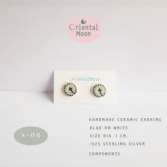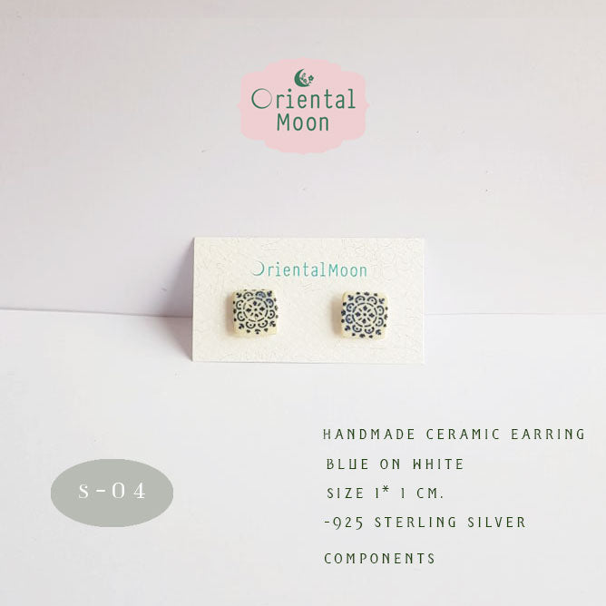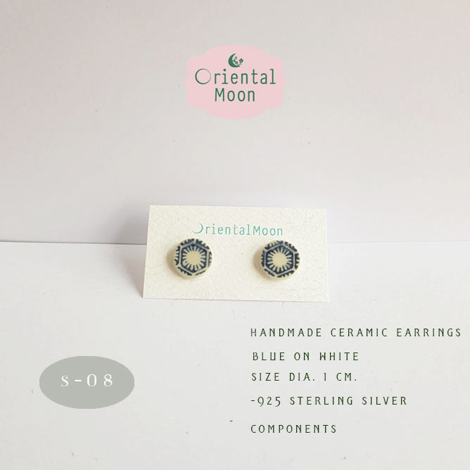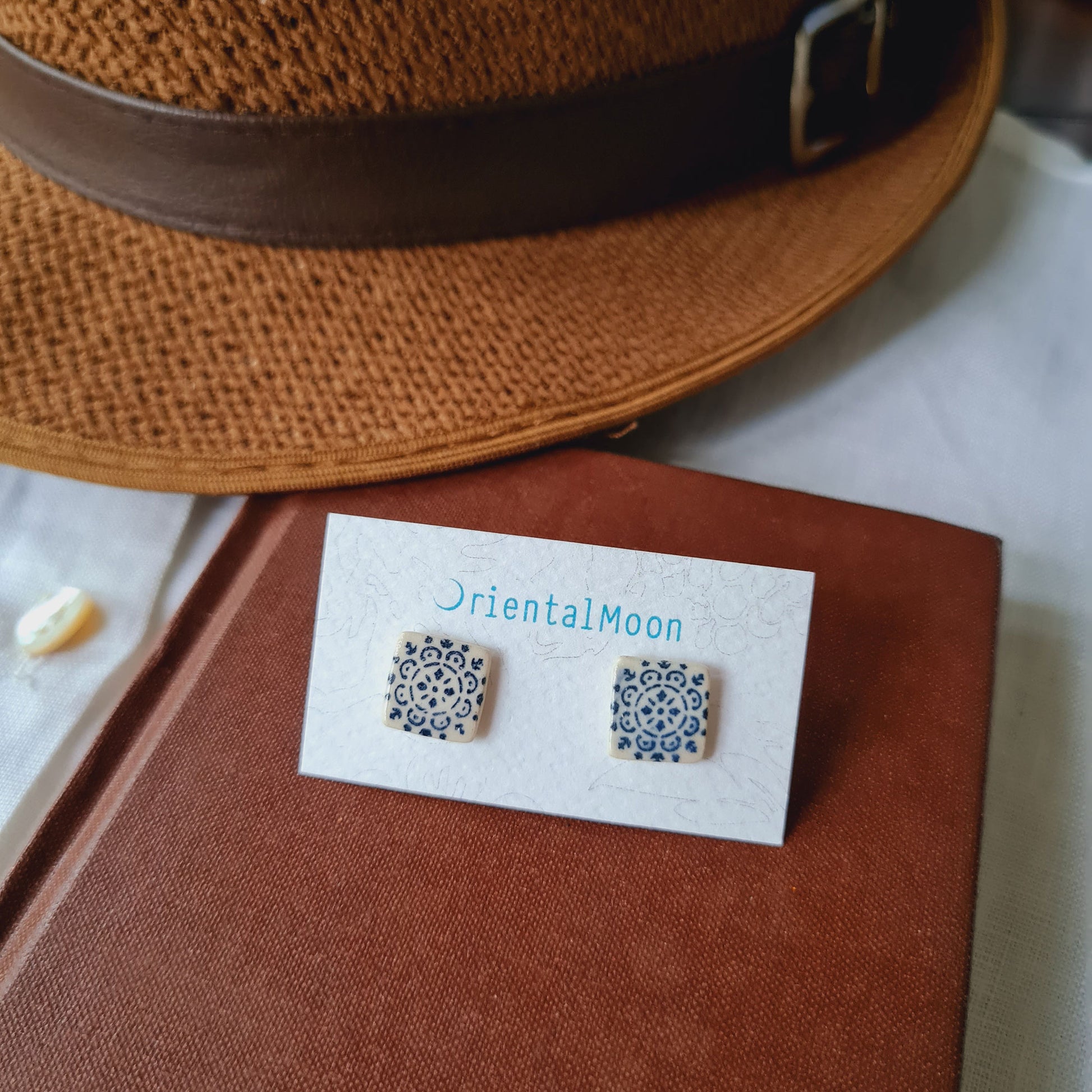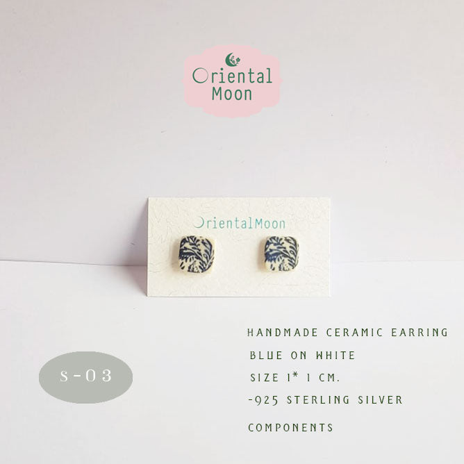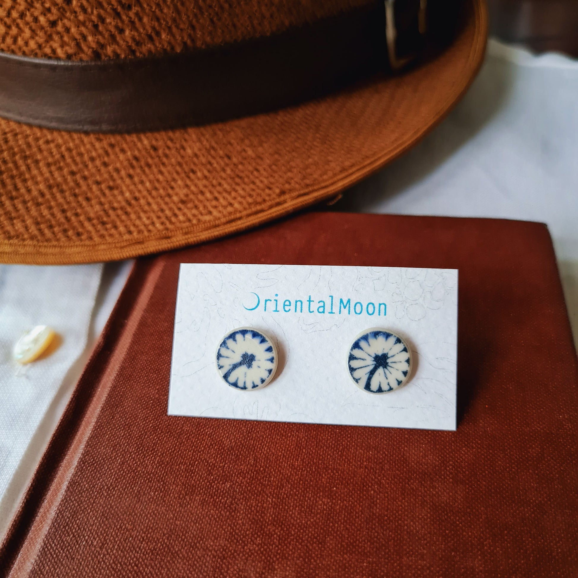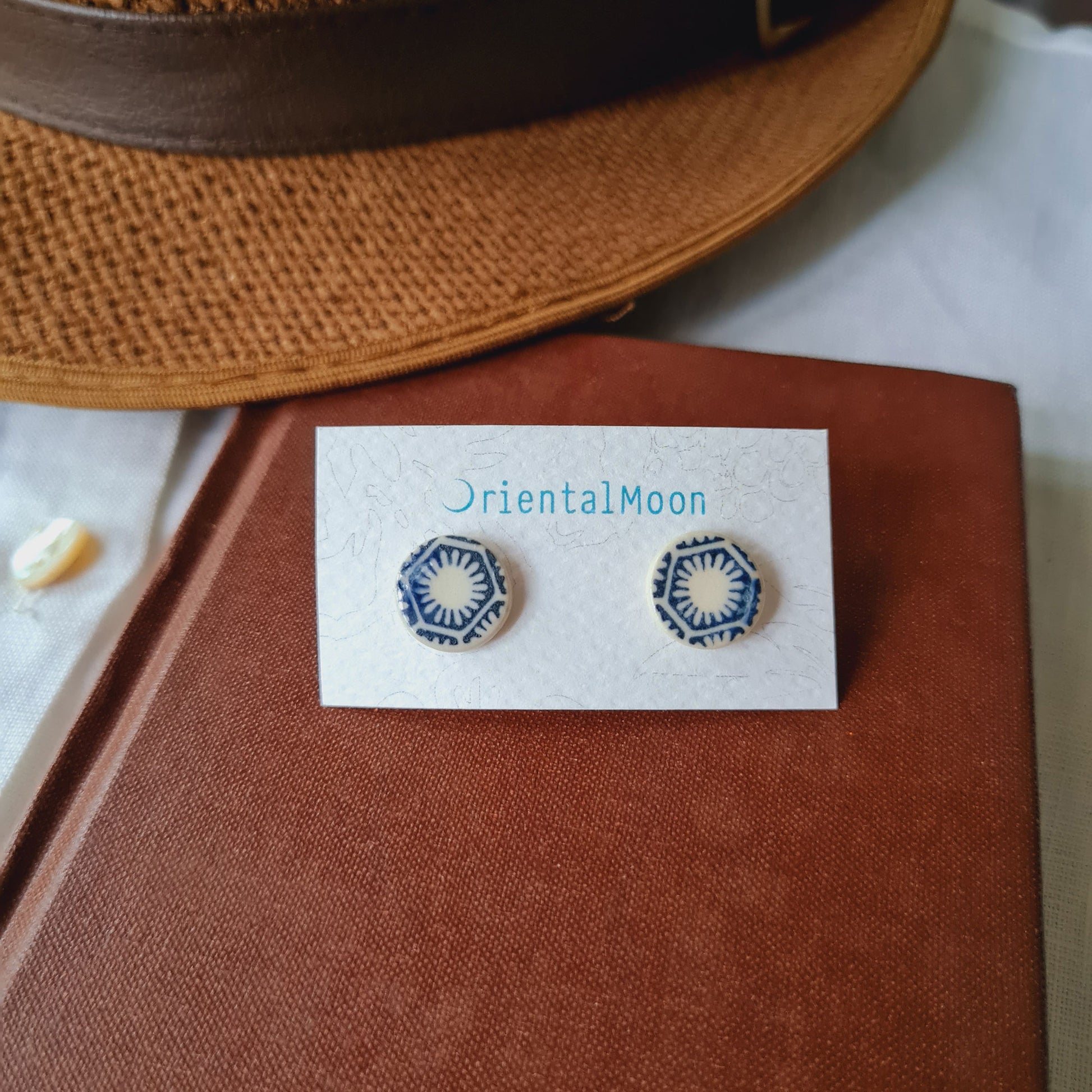 Small blue & white ceramic stud earrings for hypoallergenic( Pattern type)