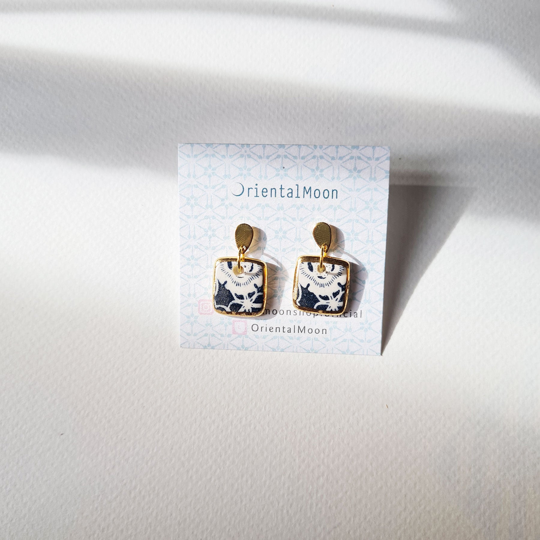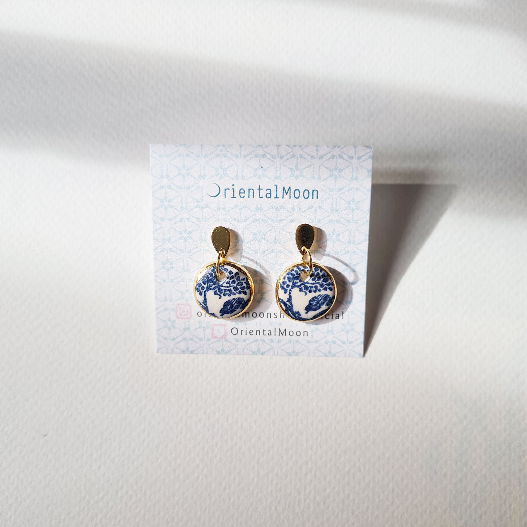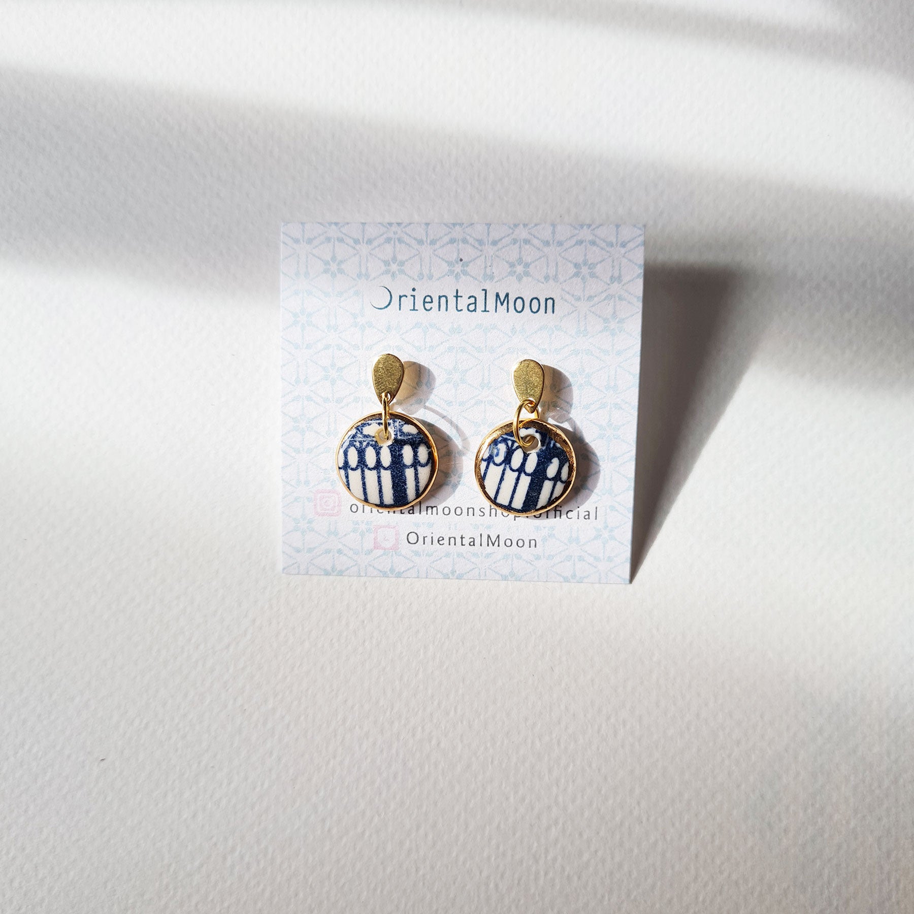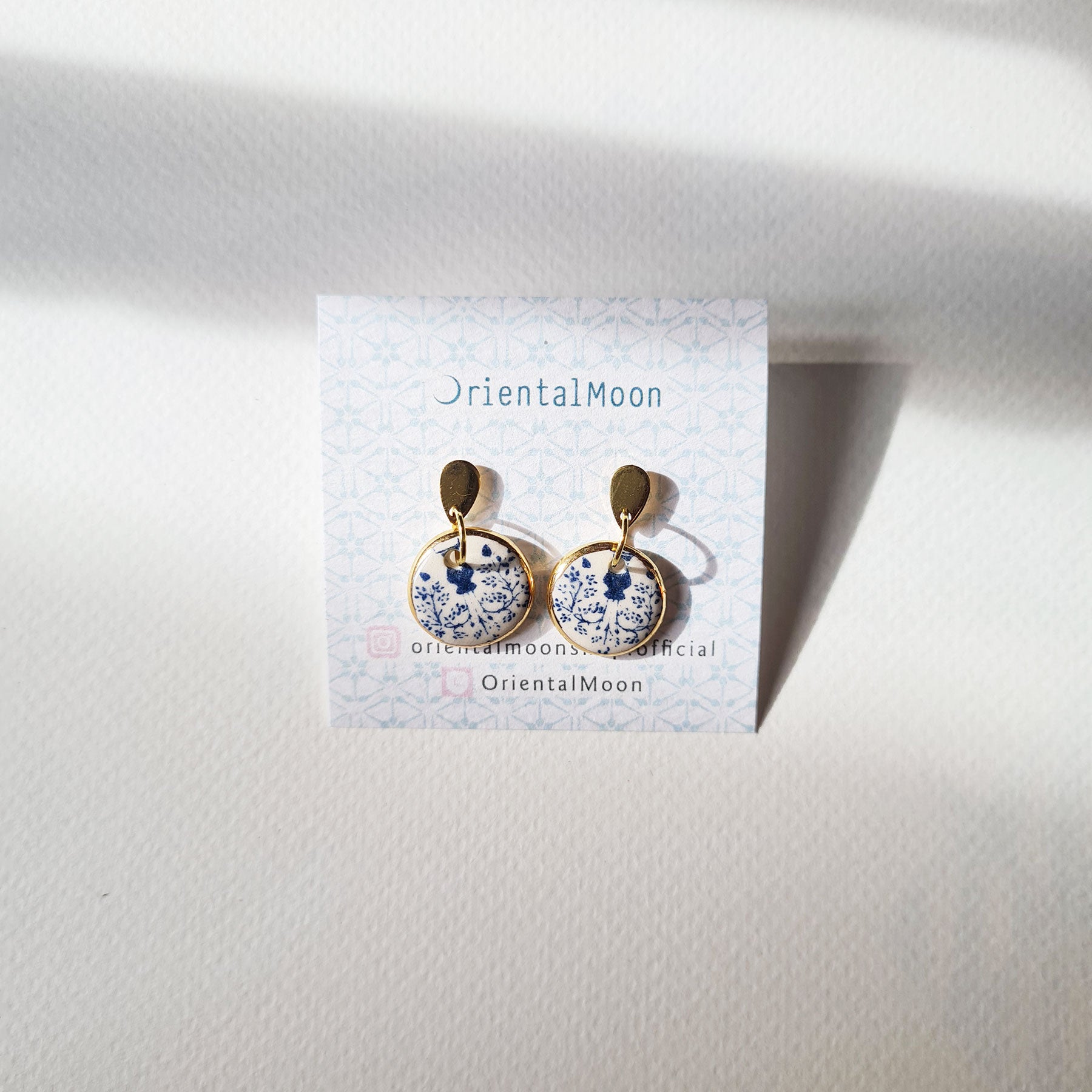 Ceramic Earrings with Gold Edging - Blue and White Pattern (1-3)